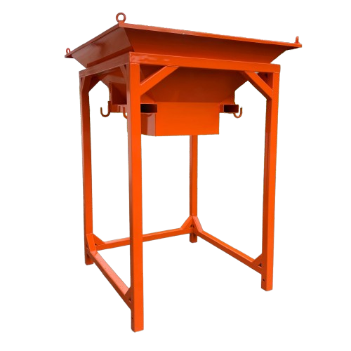 TRAMOGGIA A IMBUTO INFORCABILE PER BIG BAG BG 1069 Struttura in acciaio ad imbuto con sedi forche per sollevamento Larghezza bocca d'ingresso cm 160 x 120 Larghezza bocca ingresso sacco cm 68 x 67