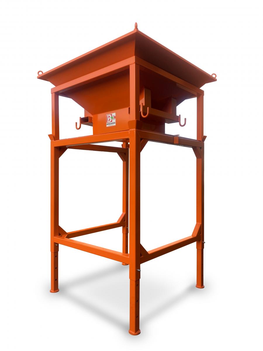 TRAMOGGIA PORTA BIG BAG REMOVIBILE BG 661 Struttura in acciaio regolabile in altezza con imbuto removibile Ingombro base cm 137 x 137 Larghezza bocca d'ingresso cm 167,5 x 167,5 Larghezza bocca ingresso sacco cm 50 x 50 Portata 2000 kg